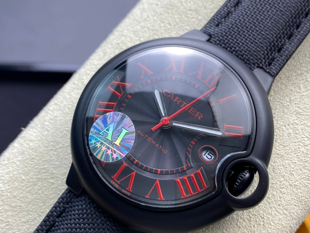 Cartier Balloon 42mm Black Red Automatic