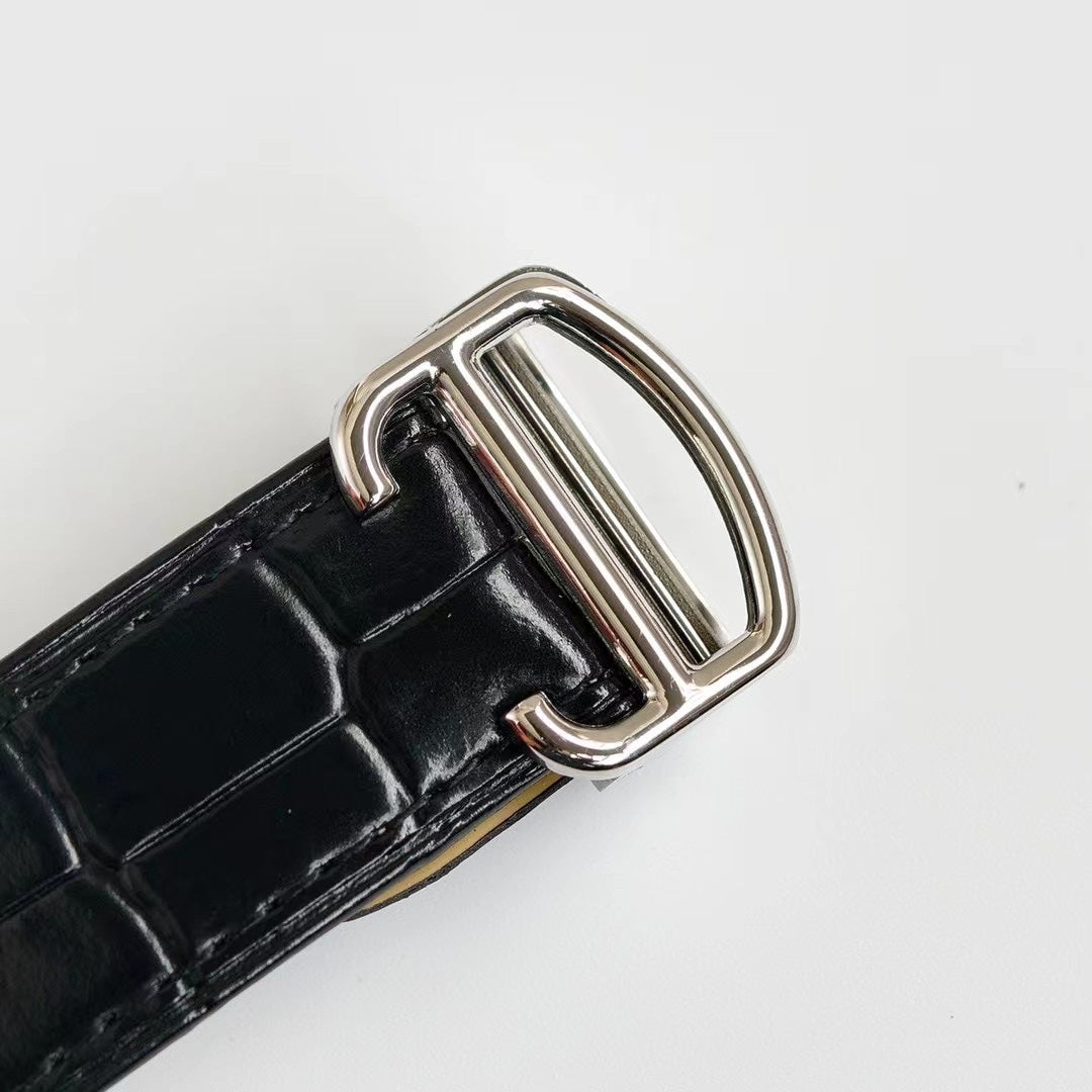 Baignoire 28mm Pink Gold Diamond Case Black Silk Leather