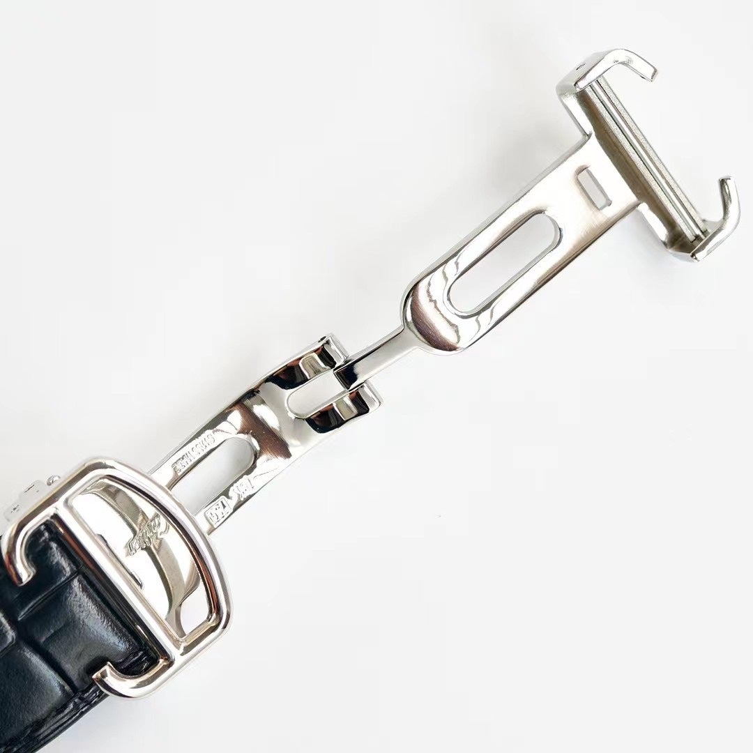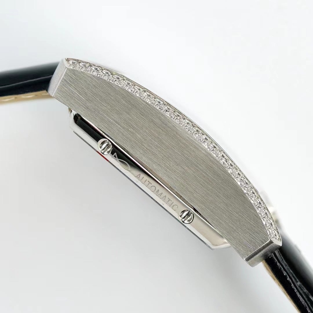 Baignoire 28mm Silver Diamond Case Black Silk Leather