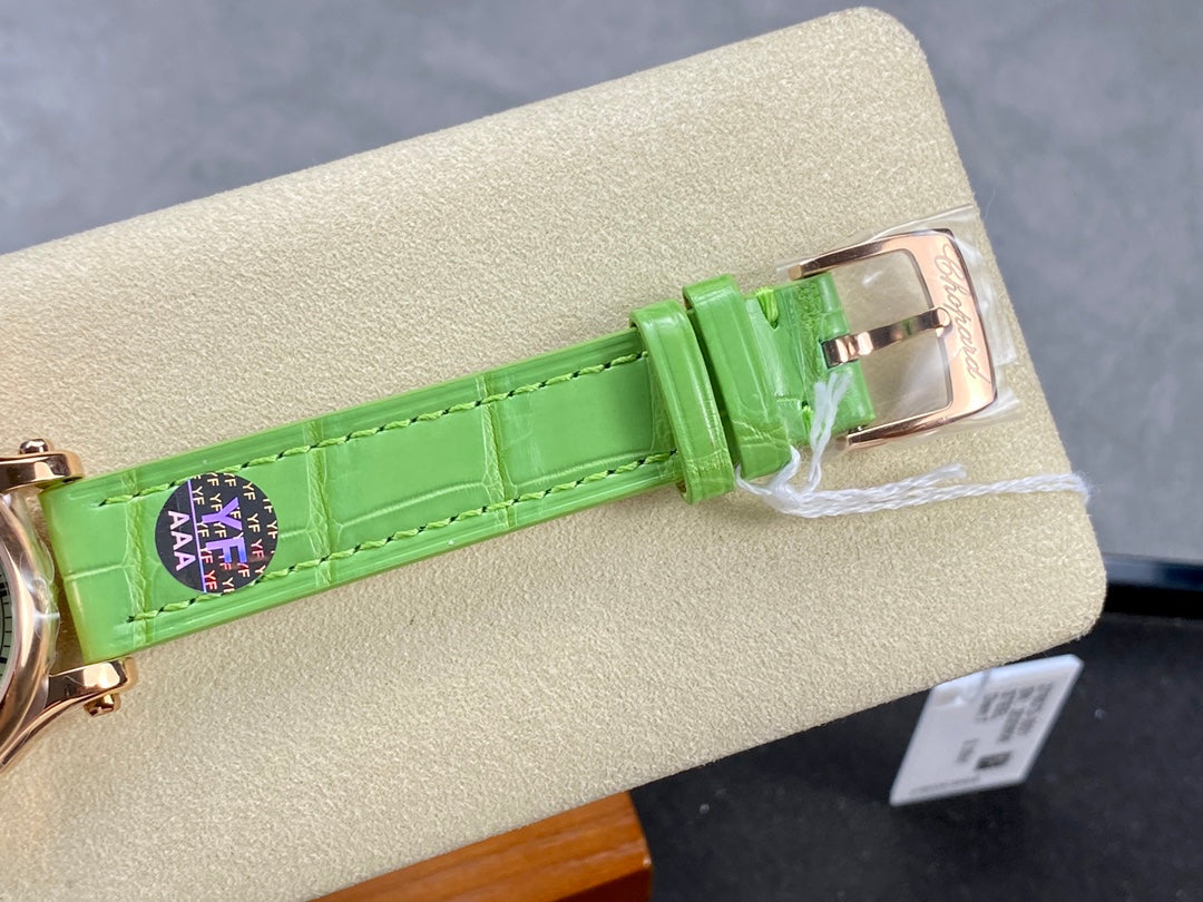 Happy Diamonds 30mm Pink Gold Green Dial