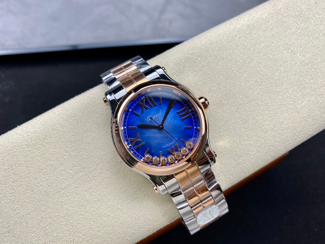 Happy Diamonds 36mm Pink Gold Deep Blue Dial