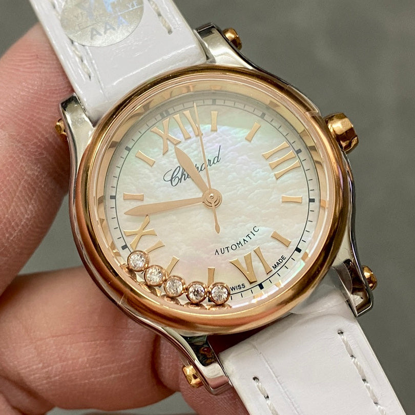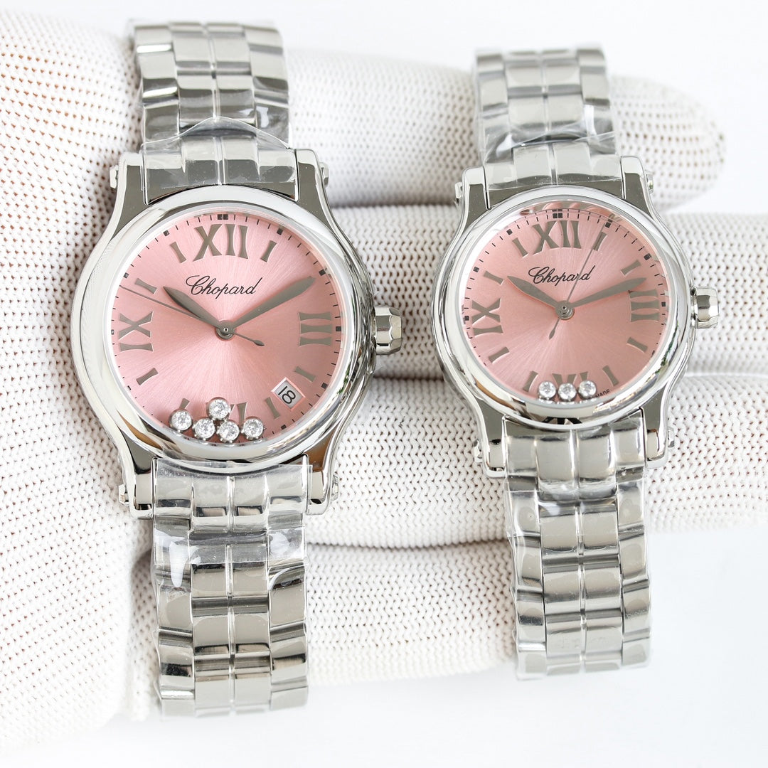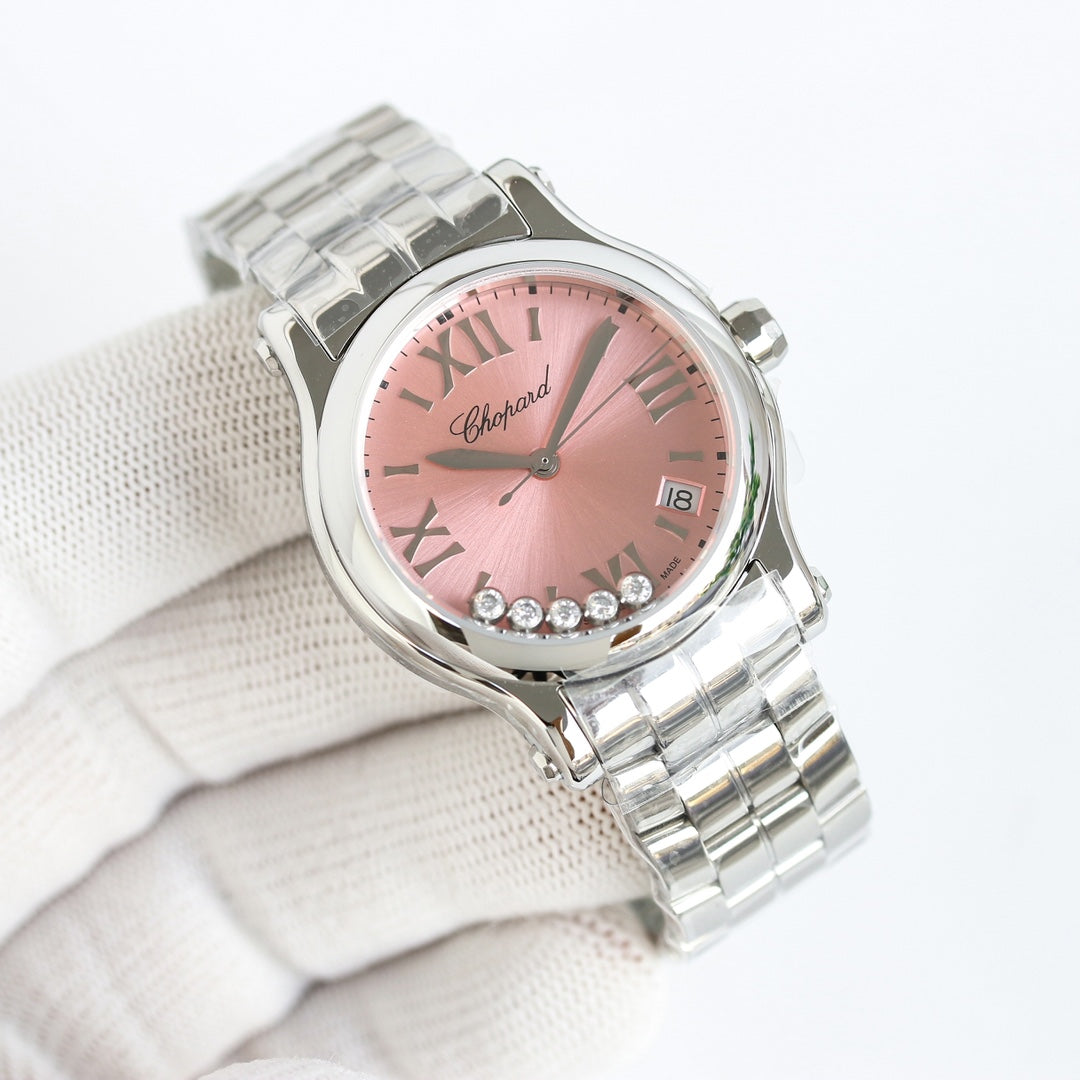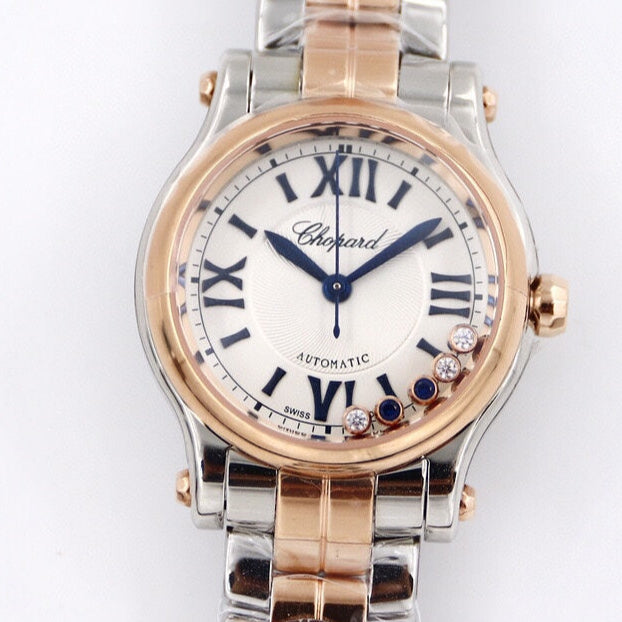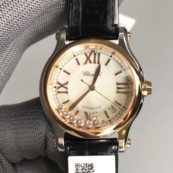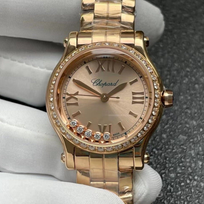Happy Diamond Pink 36mm Pink Gold White Dial