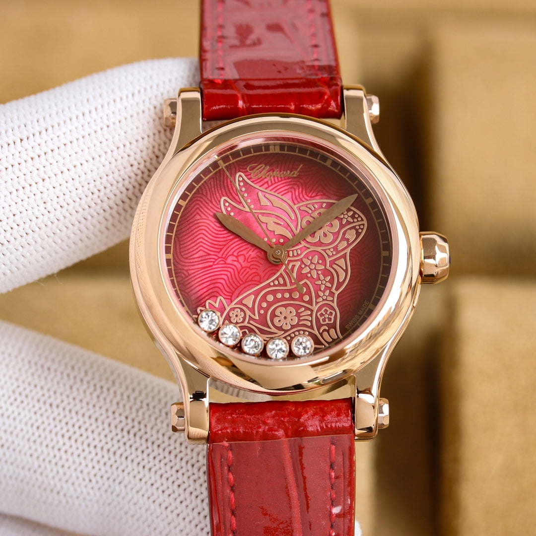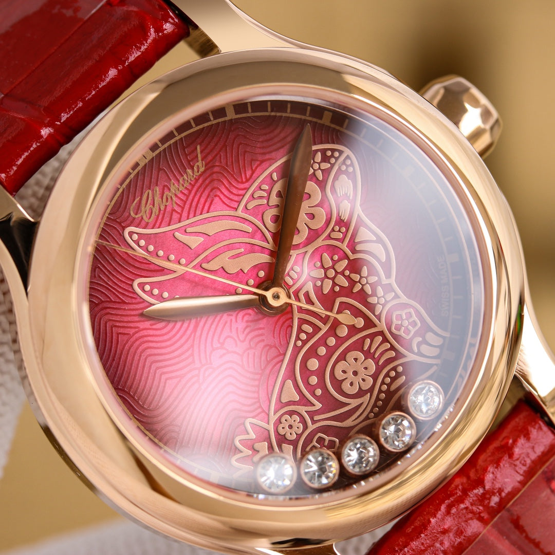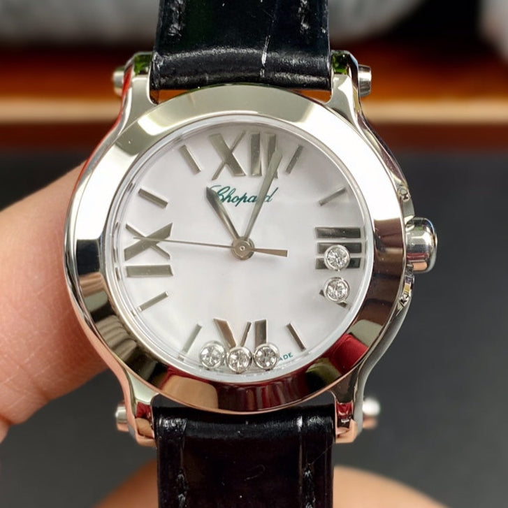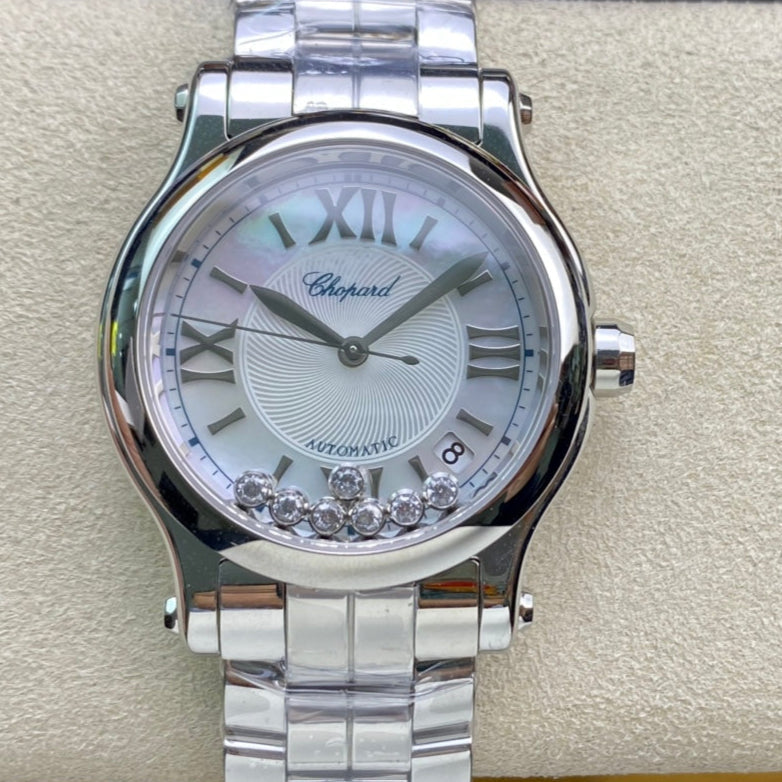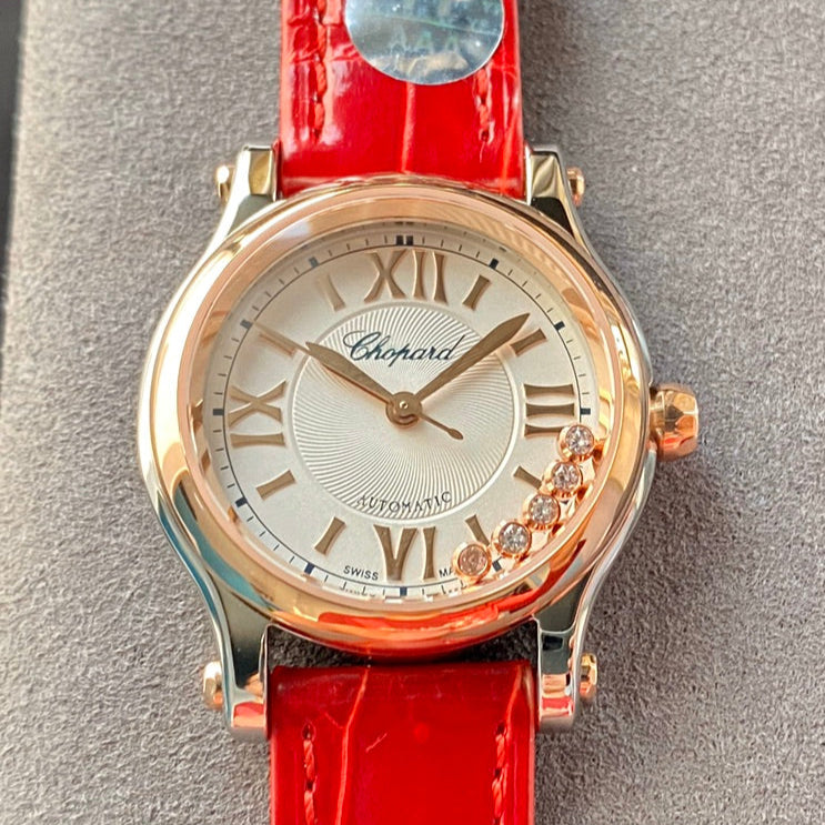 Happy Diamond Pink 36mm Pink Gold White Dial