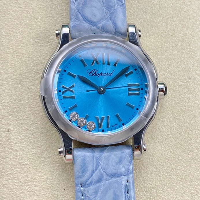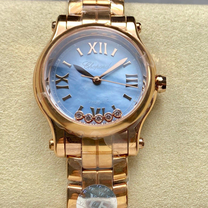 Happy Diamonds 30mm Pink Gold Blue Dial