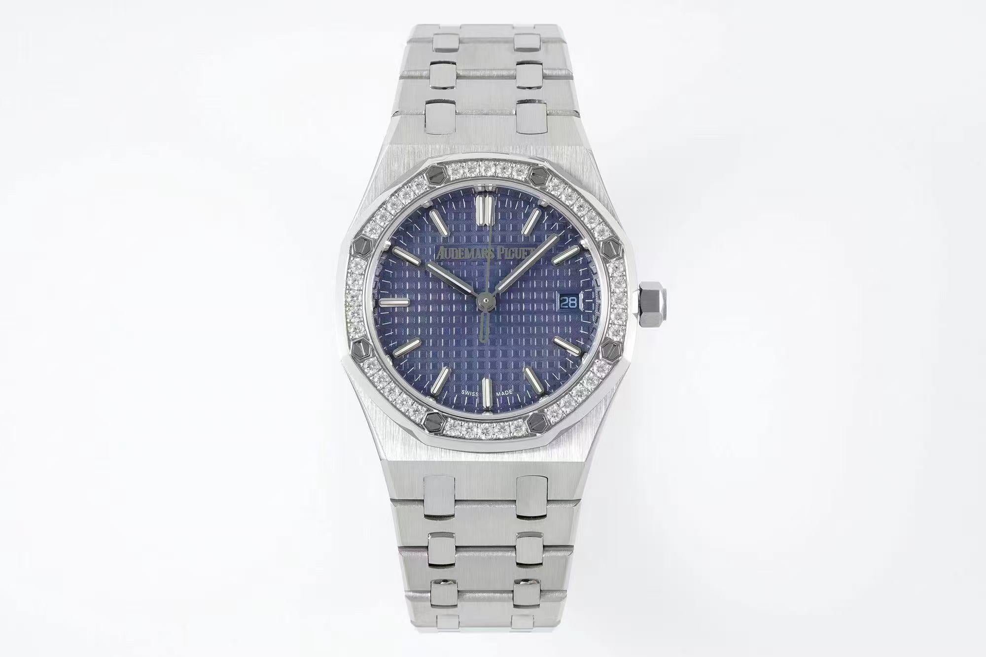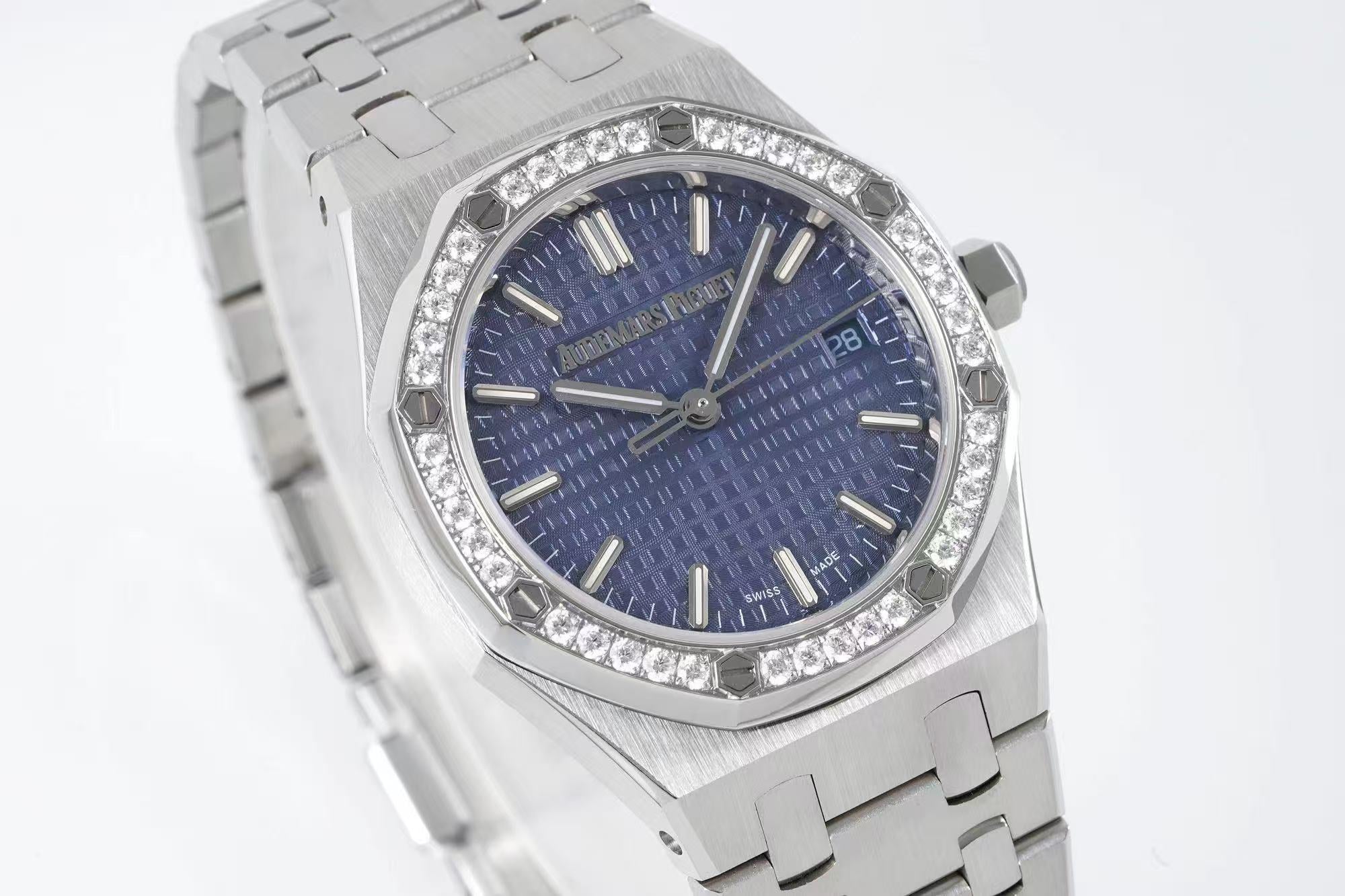 Audemars Piguet Royal Oak Blue Dial 34mm Diamond-Set Bezel