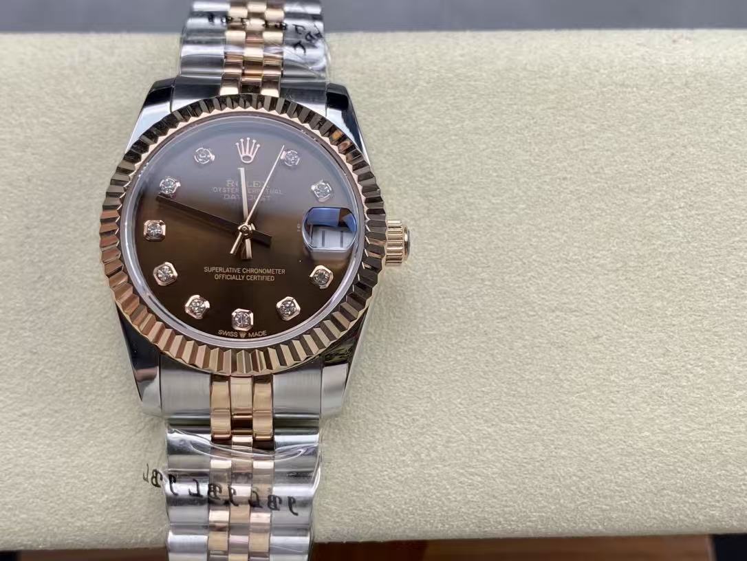 Datejust 28mm Pink Gold Steel Chocolate Dial Diamond Numerals