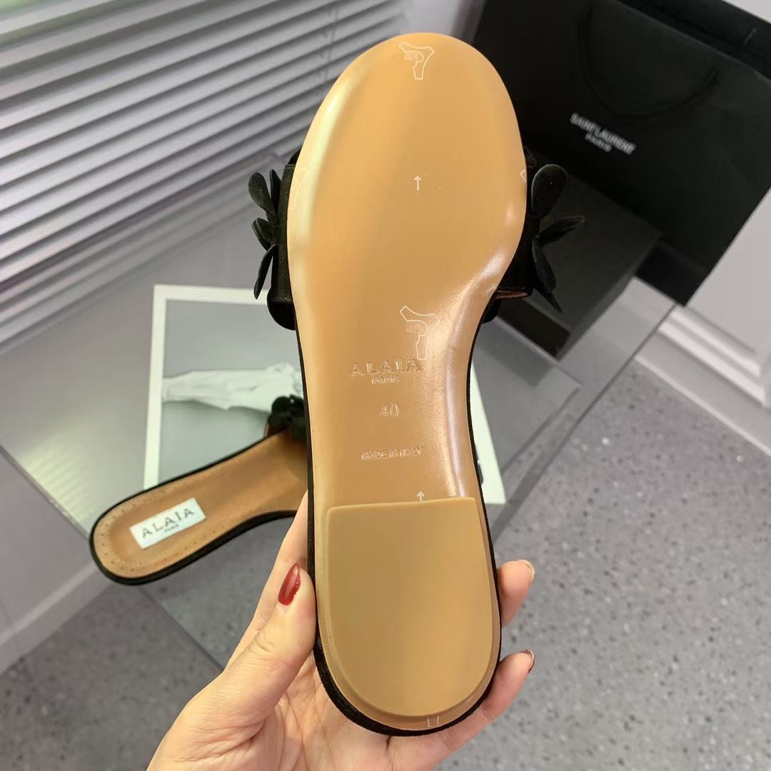 Alaia 25 Flower Slippers Black Sheepskin 293157