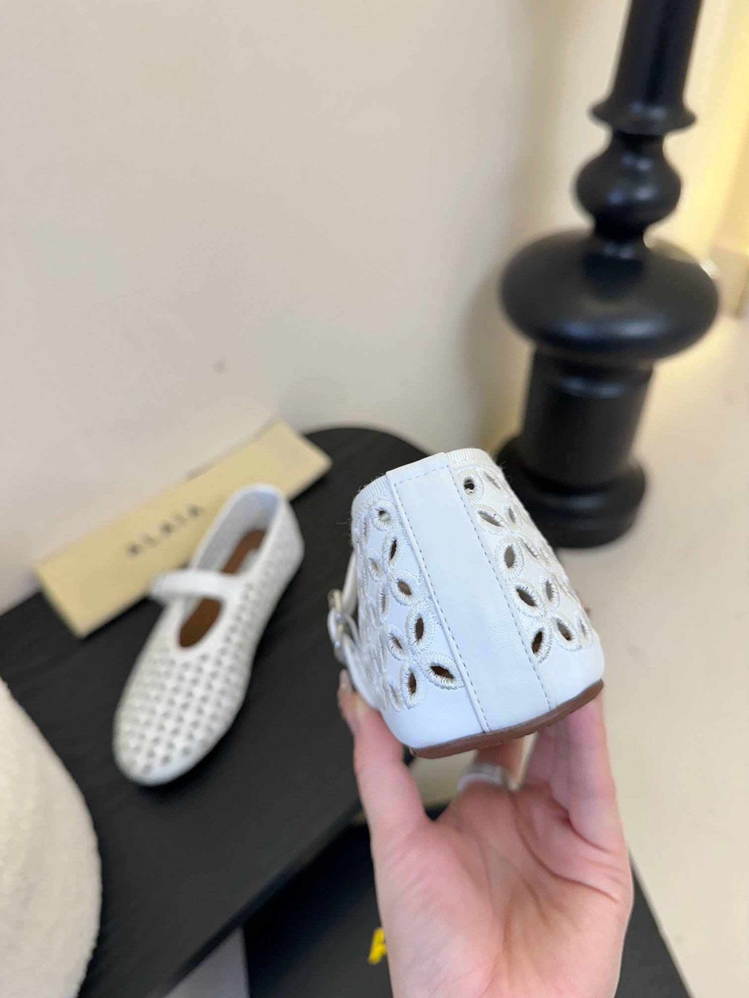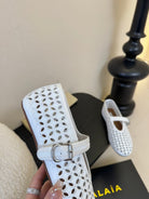 Alaia 25 Mary Jane Mesh Ballet Flats White Calfskin 297033