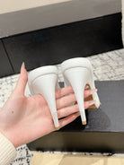 Alaia 25 Spike High Heel Mules White Lampskin 293182
