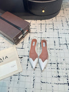 ALAIA FLAT SLINGBACK IN WHITE PATENT CALFSKIN AND FILM