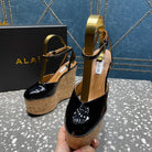 ALAIA WEDGE PUMP 15 CM IN BLACK LAMBSKIN AND BEIGE RUBBER