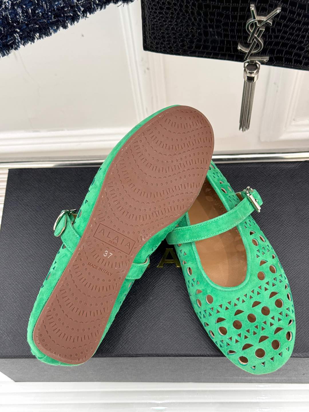 Alaia Women's Ballet Flat Shamrock Green Suede 293221