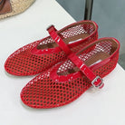 Alaia 25 Laminated Fishnet Ballet Flats Red Lambskin 576443