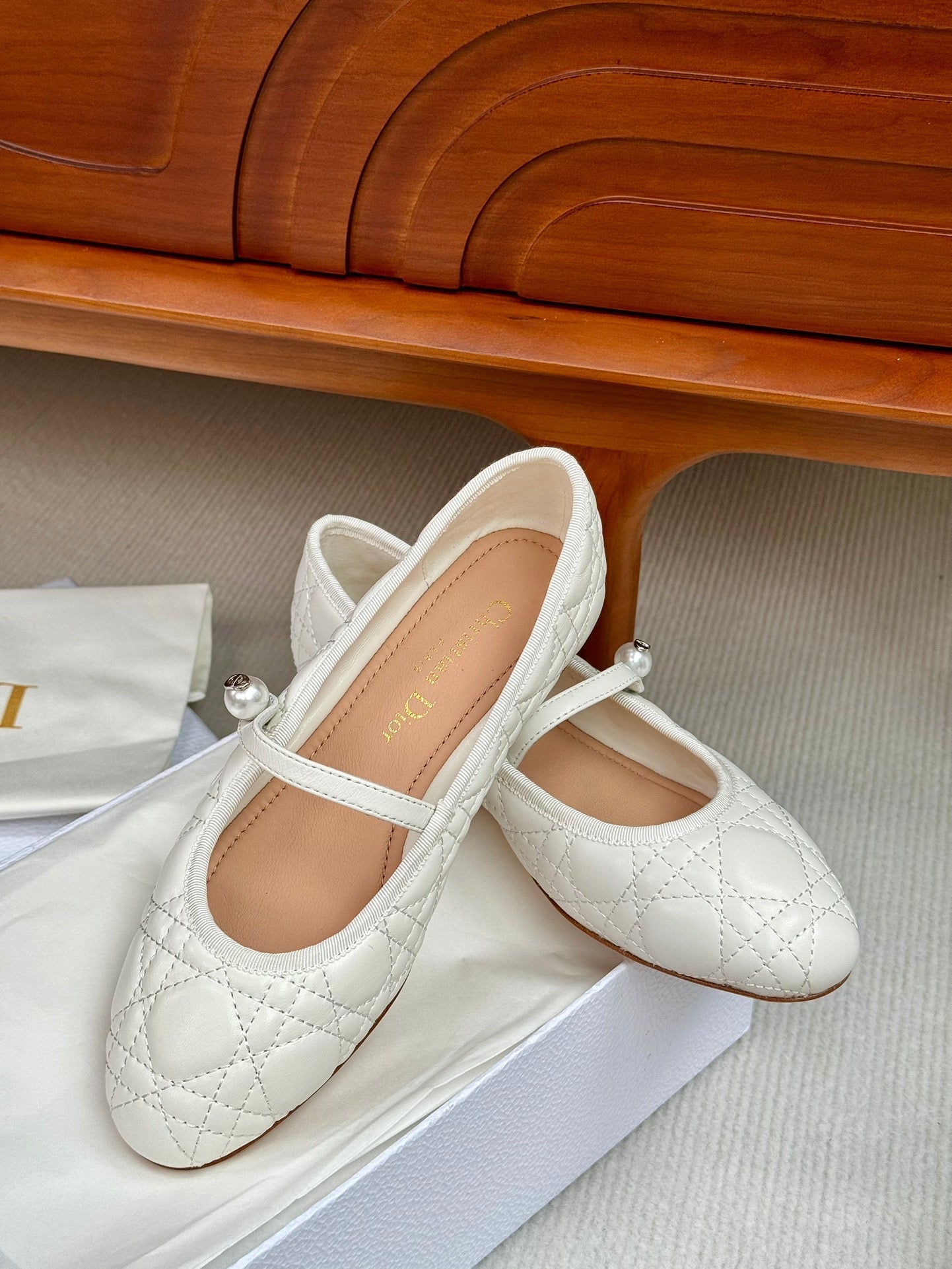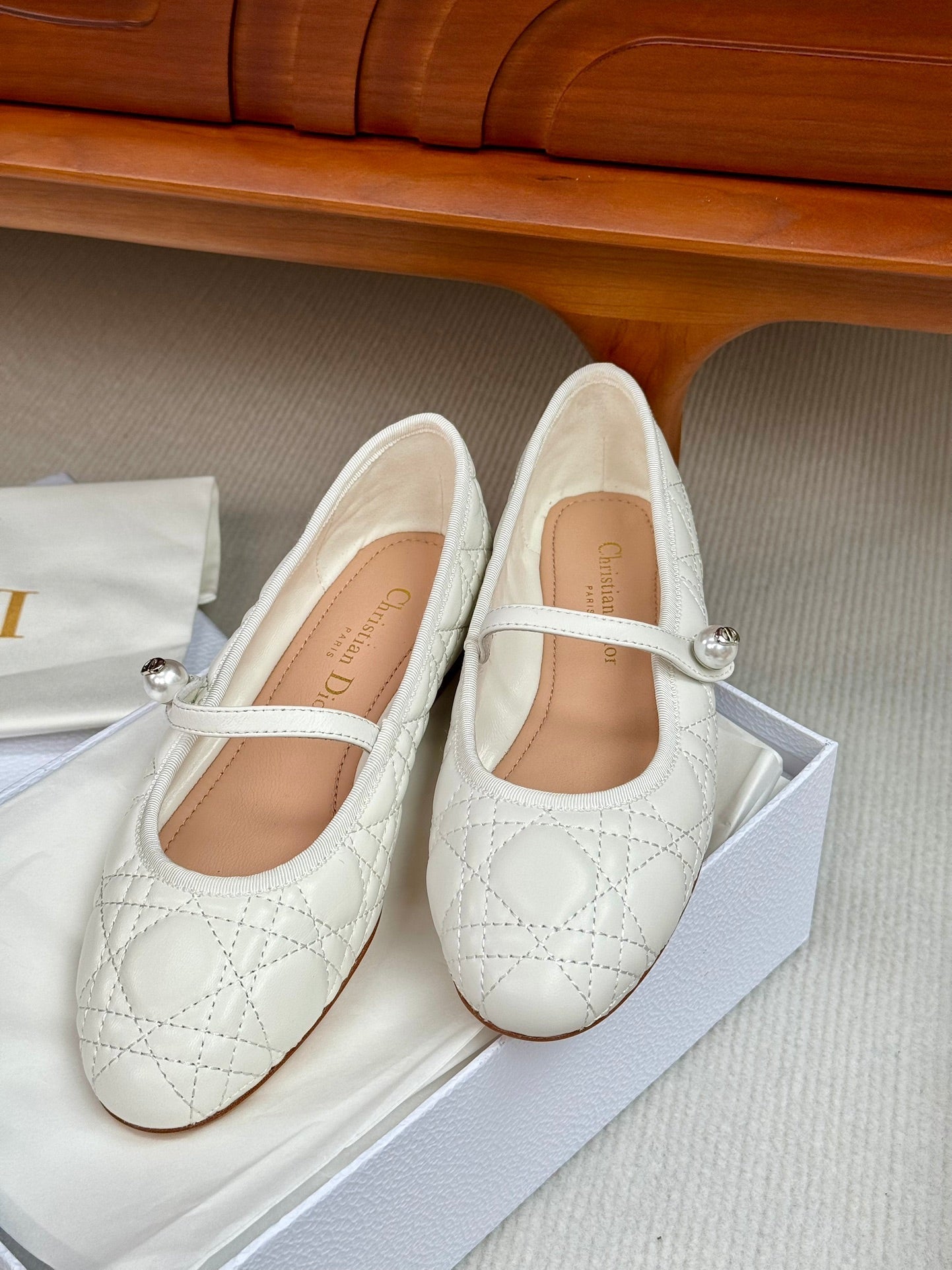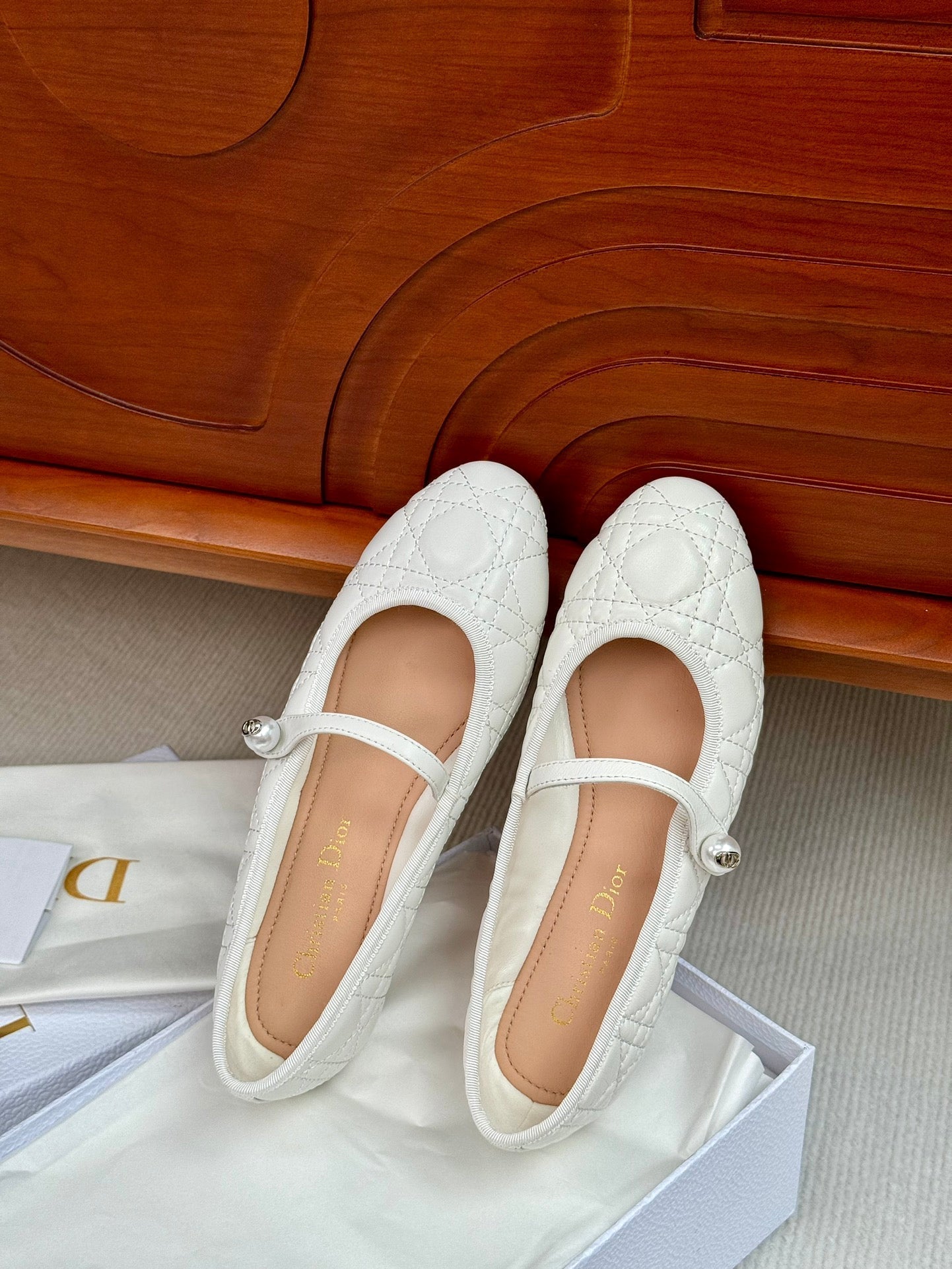 cd ballet flat white lambskin mop middle