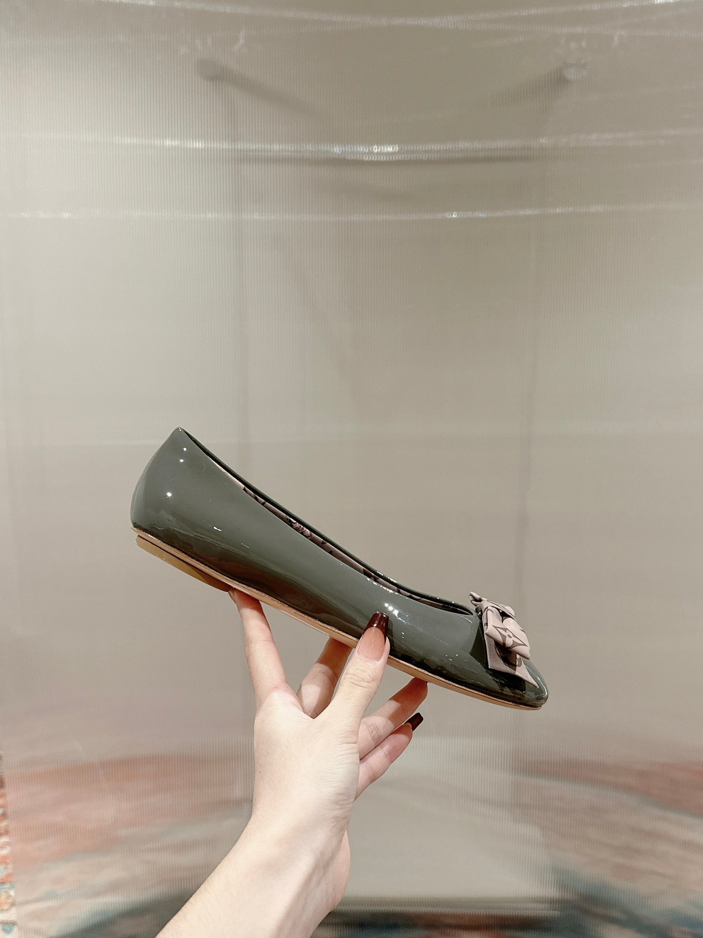 LV Popi Flat Ballerina Green Cement Color Cowhide