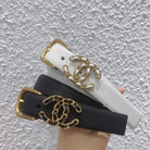CC BELT 30MM BUCKLE GOLD WHITE LEATHER WHITE