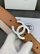 CC WOMEN'S BELT 3.0CM LEATHER LIGHT BROWN BUCKLE SILVER