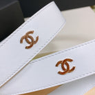 CC WOMEN'S BELT 30MM BUCKLE PINK GOLD LEATHER WHITE