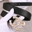 CC WOMEN'S BELT 30MM LEATHER BLACK BUCKLE STAR DIAMOND