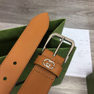 G BELT SILVER SQUARE INSTALL BUCKLE BROWN LEATHER 3.5CM