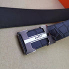 H BELT STEEL BUCKLE CROCODILE-PATTERNED BLACK LEATHER 40MM