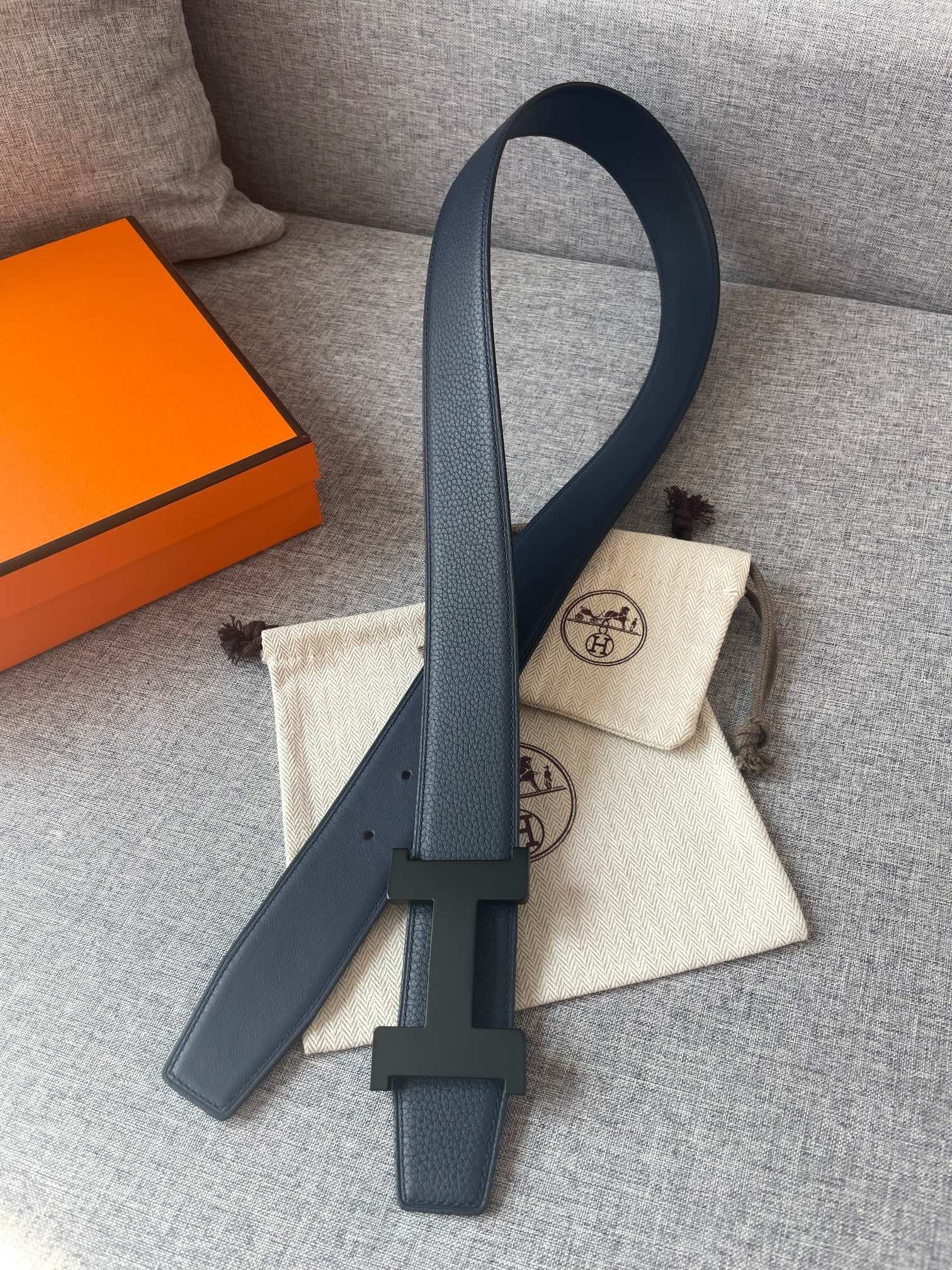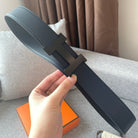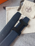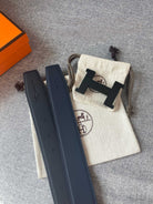 H CONSTANCE REVERSIBLE BELT 38MM BLACK BUCKLE NAVY BLUE LEATHER
