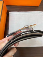 H CONTANCE BELT 38MM SILVER BUCKLE DARK BLUE GREY LEATHER