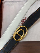H ODYSSEE RIVERSIBLE BELT 32MM GOLD BUCKLE WHITE BLACK LEATHER