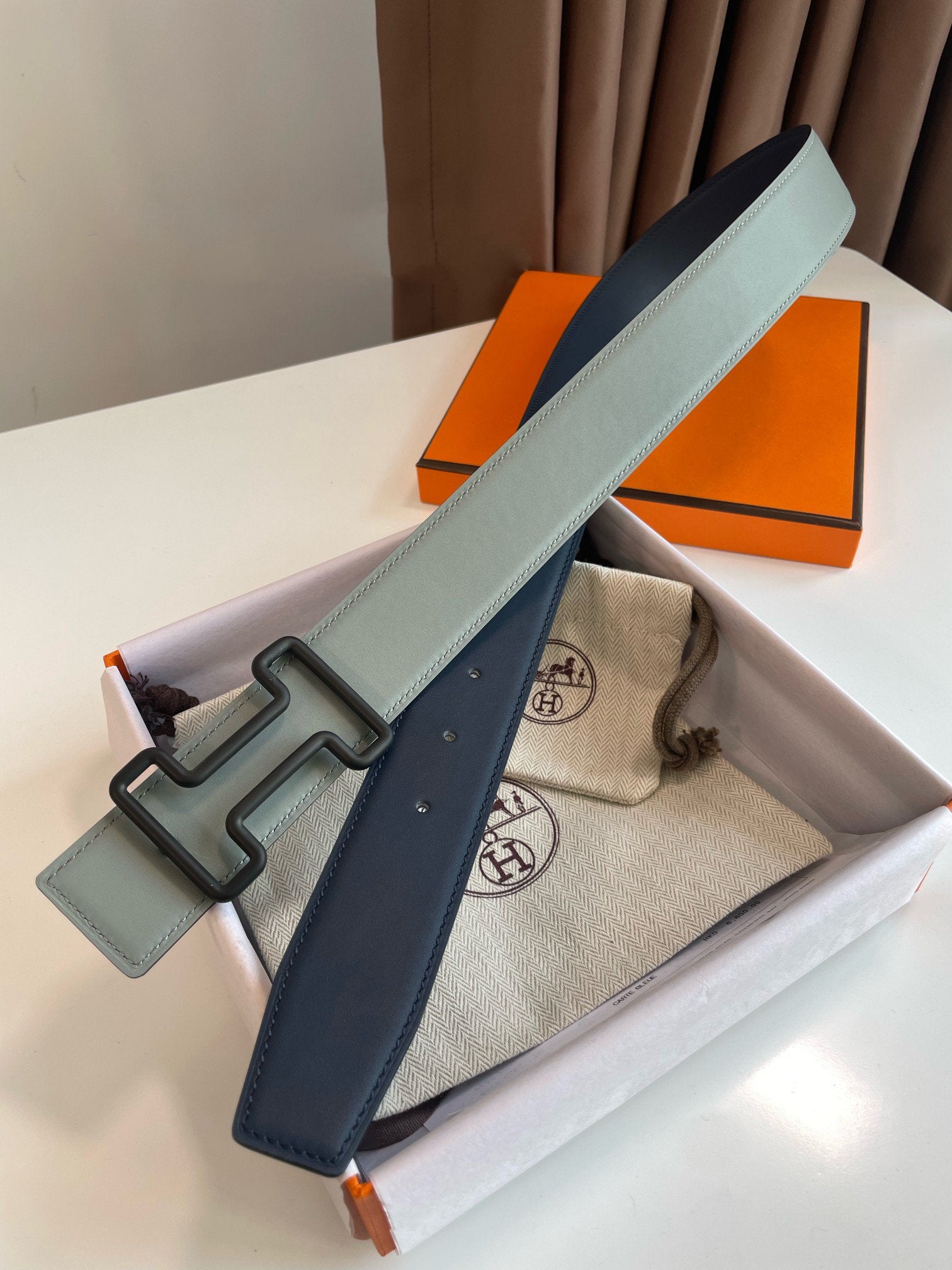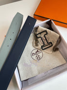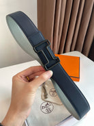 H TONIGHT BELT 38MM BLACK BUCKLE DARK BLUE GREY LEATHER