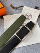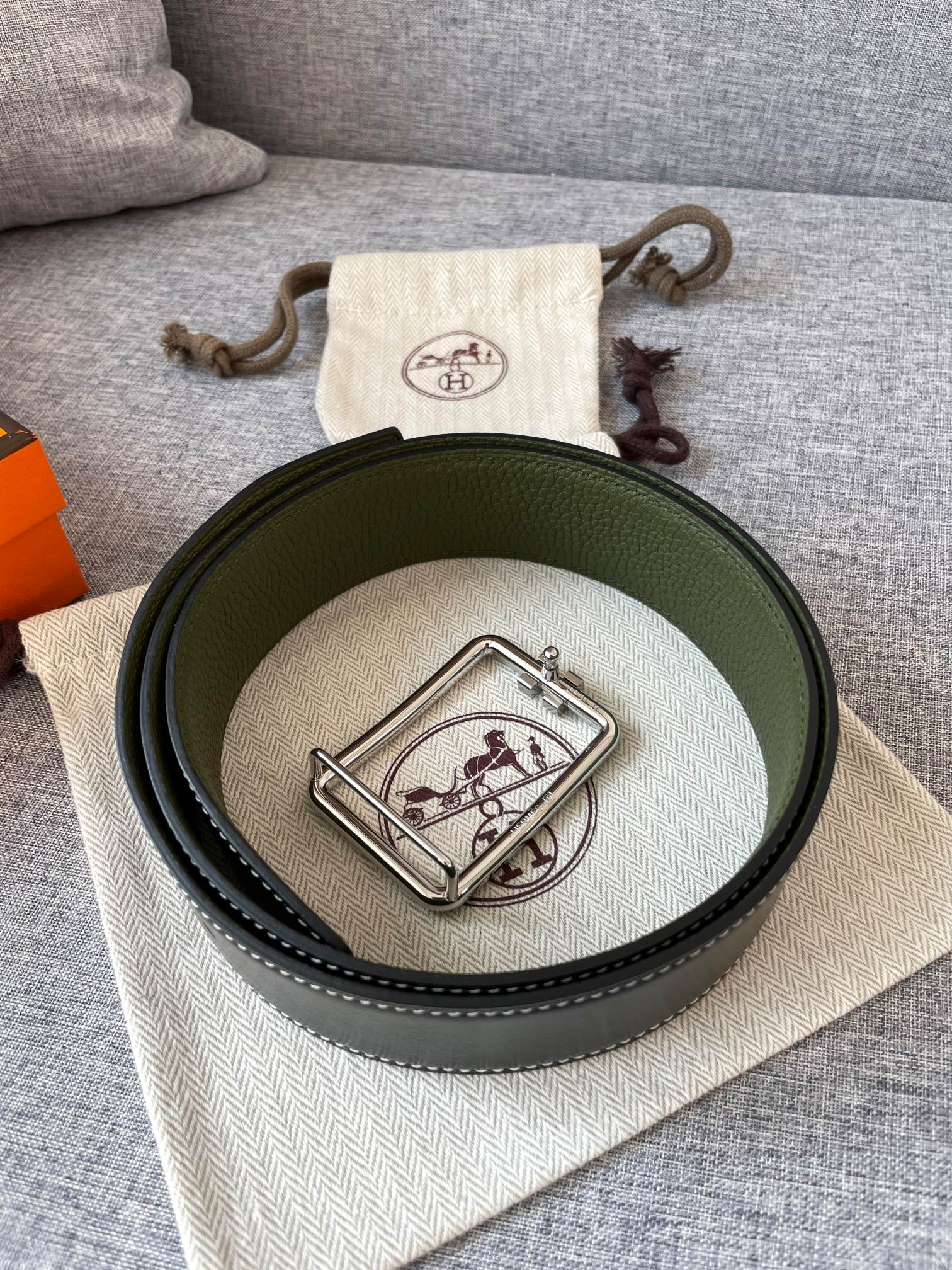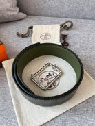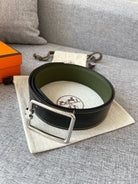 H TUBE BELT 38MM SILVER BUCKLE GREEN BLACK LEATHER