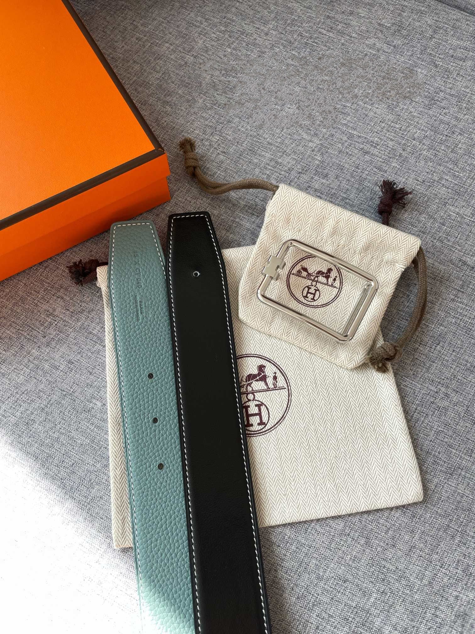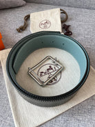 H TUBE BELT 38MM SILVER BUCKLE SKY BLUE BLACK LEATHER
