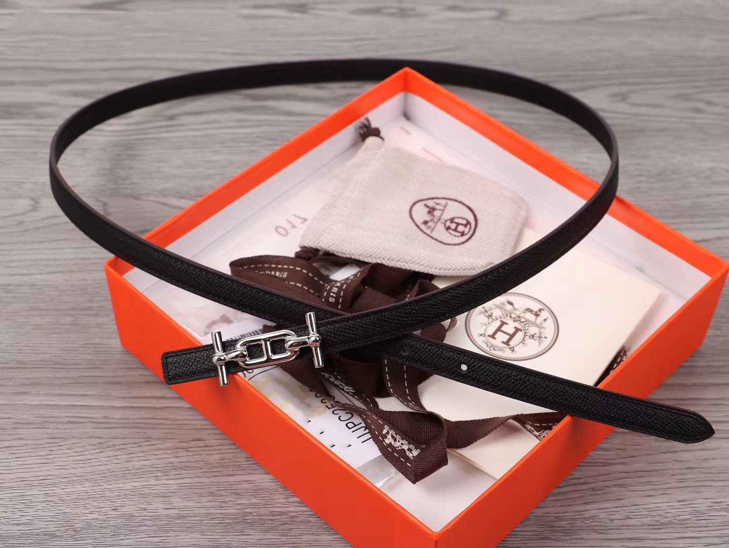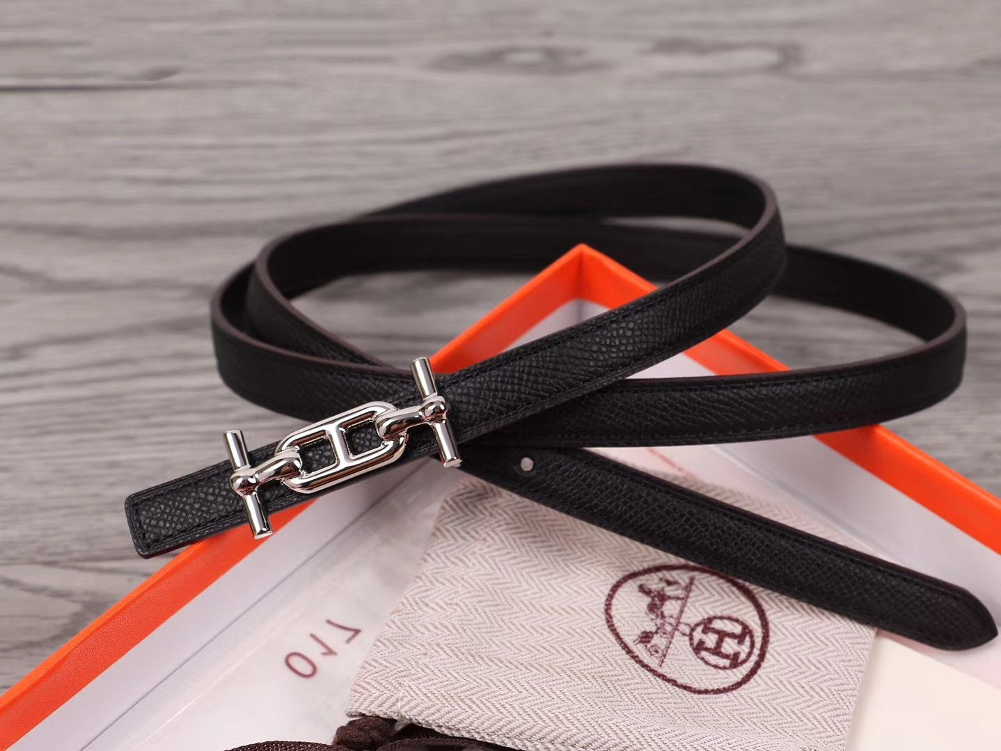 H WOMEN'S BELT 13MM SILVER BUCKLE BLACK LEATHER