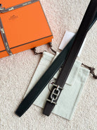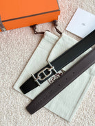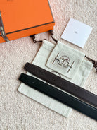HM Ancre Buckle Belt 32mm Black Chocolate Leather 187517