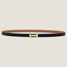 HM FOCUS BUCKLE & REVERSIBLE TAWNY BROWN AND BLACK LEATHER STRAP 13MM GOLD HARDWARE
