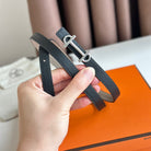 HM GAMMA BUCKLE & REVERSIBLE KHAKI BROWN AND BLACK LEATHER STRAP 13MM SILVER HARDWARE