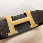 HM H D'ANCRE BELT BUCKLE & REVERSIBLE BLACK AND CHOCOLATE BROWN LEATHER STRAP 38 MM GOLD HARDWARE