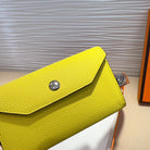 HM KELLY LEMON YELLOW POCKET 18MM BELT CINNAMON BROWN LEATHER SILVER HARDWARE