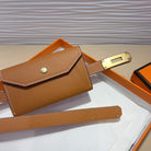 HM KELLY POCKET 18MM BELT CINNAMON BROWN LEATHER GOLD HARDWARE