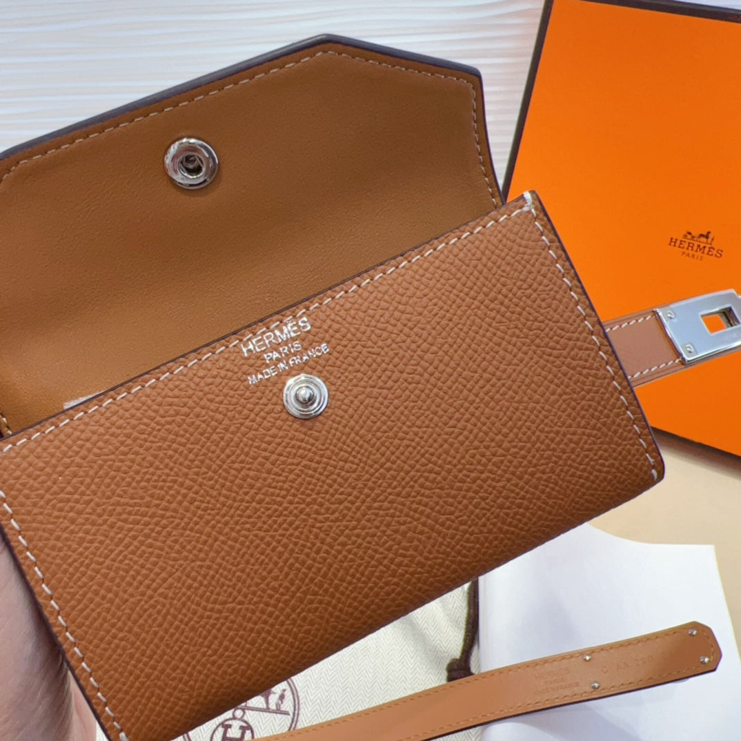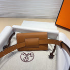 HM KELLY POCKET 18MM BELT CINNAMON BROWN LEATHER SILVER HARDWARE