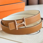 HM Pink Gold Mors H buckle & Reversible 24 mm belt Brown White leather 125363