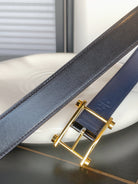 HM REVERSIBLE NAVY BLUE LEATHER STRAP 32 MM GOLD HARDWARE