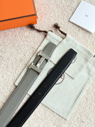 HM Silver H 5382 Faubourg Buckle Belt 32mm Gray Green Leather 187600