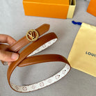 LV Circle Nautical 20mm Reversible Belt Gold Buckle Tan White lambskin