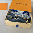 LV Circle Nautical 20mm Reversible Belt Silver Buckle Black White Blue Lambskin