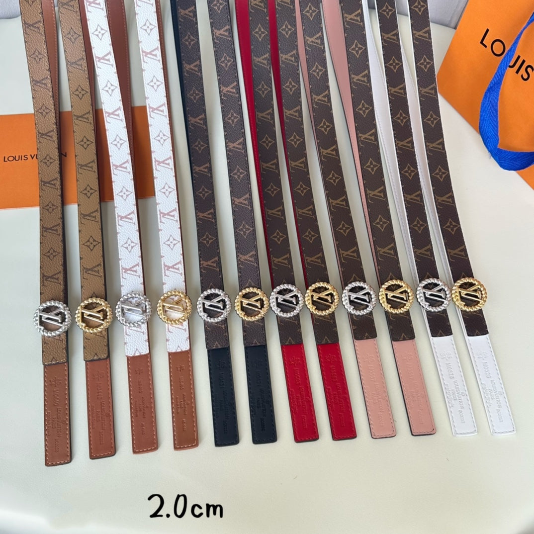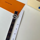 LV Circle Nautical 20mm Reversible Belt Silver Buckle White Brown Lambskin