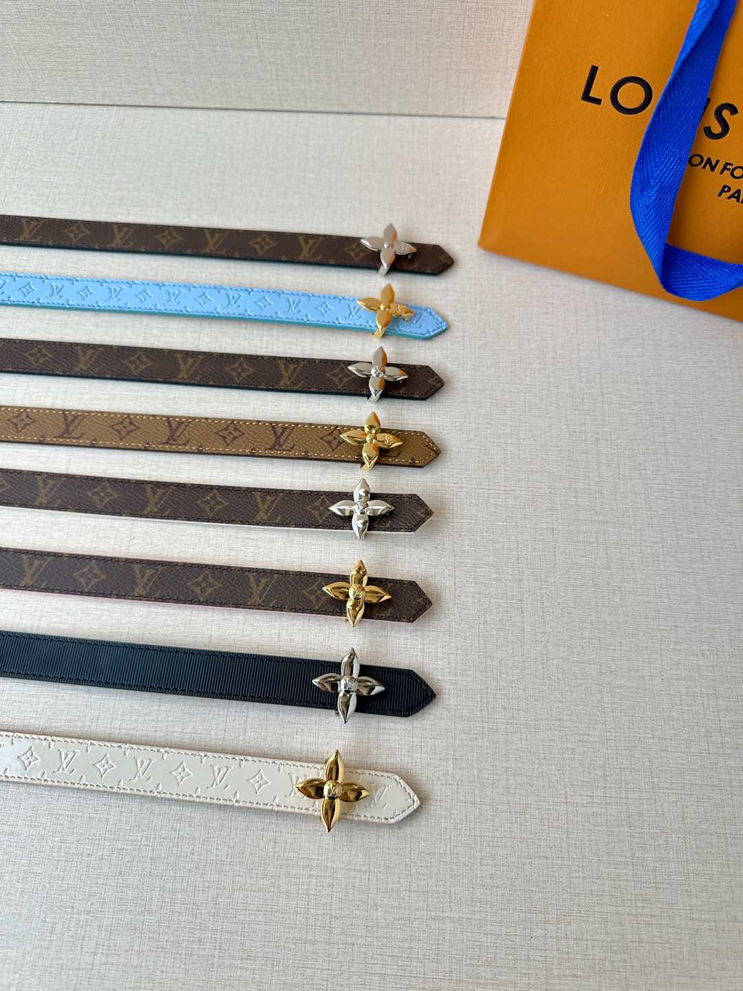 LV Flowergram 20mm Reversible Belt White Brown Calfskin
