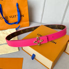 LV Flowergram 30mm Reversible Belt Gold Buckle Hot Pink Brown Leather