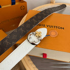 LV Flowergram Round 30mm Reversible Belt White Brown Empreinte Calfskin