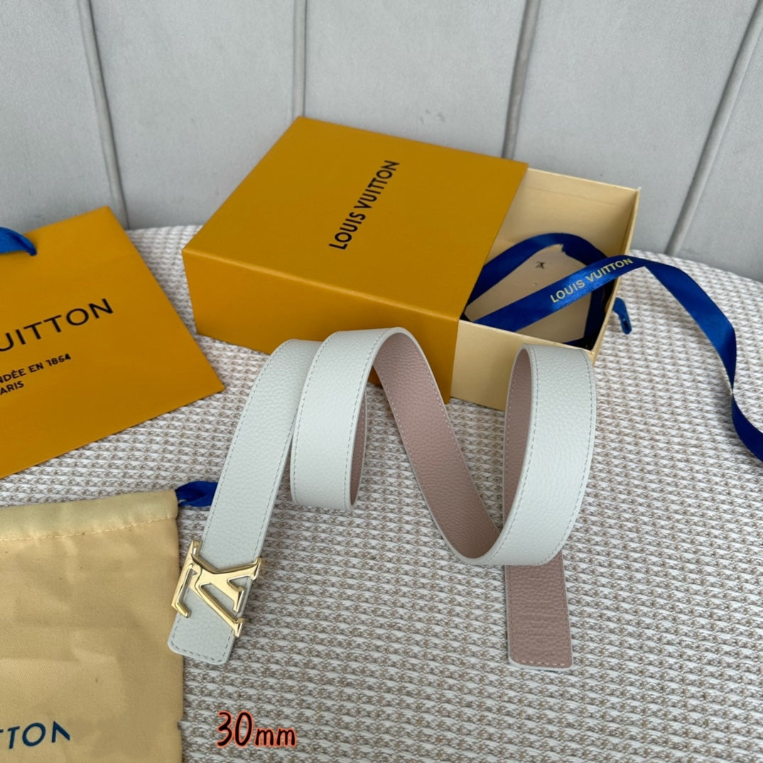 LV Initiales 30mm Reversible Belt Gold Buckle Pink White Leather