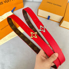 LV MINI FLOWERGRAM 30MM REVERSIBLE BELT IN CHERRY RED CALFSKIN SILVER HARDWARE